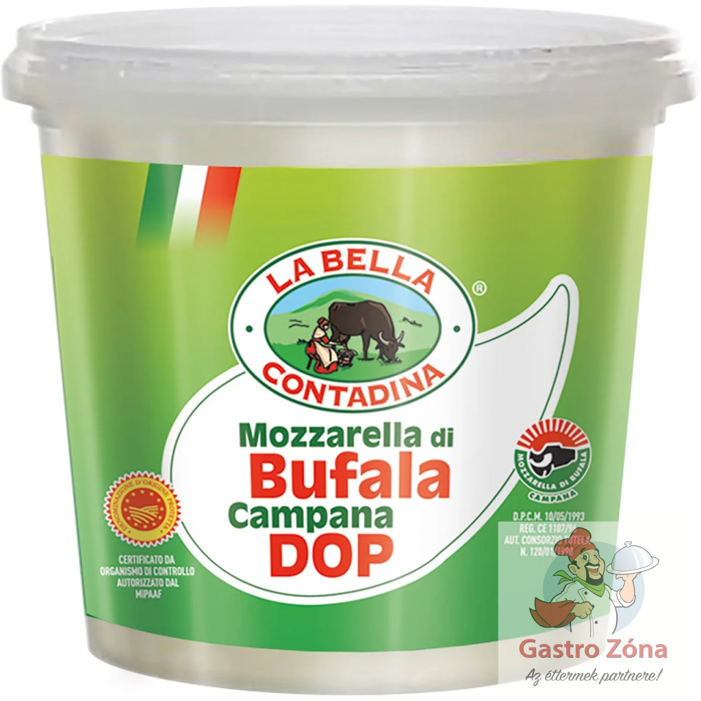 A Campanian DOP bivalymozzarella egy nyújtott túrósajt, amelyet 100%-ban bivalytejből készítenek, kizárólag a DOP területen gyűjtenek, és a Mozzarella di Bufala Campana DOP oltalom alatt álló konzorcium által előírt termelési előírások szerint készül. A La Bella Contadina tejüzem az évek során megszerzett szenvedélynek és szakértelemnek köszönhetően minőségi terméket tud kínálni, kiemelve annak ízletességét és frissességét.